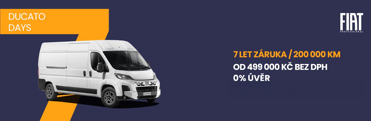 V této nabídce jsou uvedeny prodejní ceny v českých korunách, doporučené společností F Automobil Import s.r.o., které se vztahují na skladové anebo nově objednané vozy v době platnosti této nabídky nebo do vyprodání zásob. Společnost F Automobil Import s.r.o. si vyhrazuje právo změny ceny, výbavy a technických údajů vozidla bez předchozího upozornění. Veškeré ceny, údaje a vyobrazení jsou orientační, nezávazné a mají pouze informativní charakter. Všechny uvedené informace mají charakter obchodního sdělení a nejsou nabídkou ve smyslu § 1732 odst. 2 zákona č. 89/2012 Sb., občanský zákoník, ve znění pozdějších předpisů. Akční nabídku dle ceníku nelze kombinovat s podmínkami pro velkoodběratele. Podrobné informace o vozidlech, standardní a mimořádné výbavě, o aktuálních cenách a konečné prodejní ceně, dodacích podmínkách a termínech Vám na přání poskytne autorizovaný prodejce vozidel FIAT PROFESSIONAL, rovněž pro Vás připraví i konkrétní nabídku.